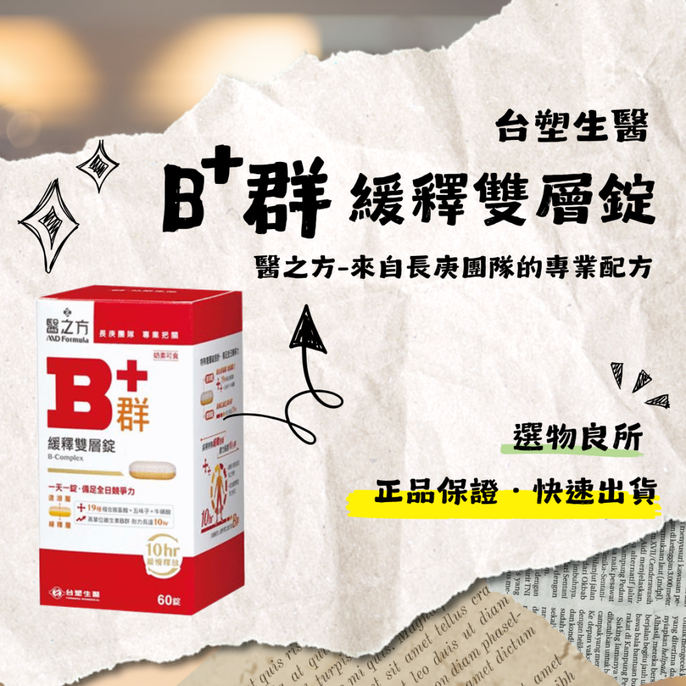 商品名稱: 【台塑生醫】緩釋B群雙層錠60錠
