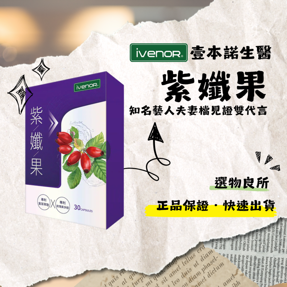 ㊣原廠授權經銷 IVENOR 壹本諾生醫 紫孅果_余祥銓柔柔夫妻見證雙代言 (30顆/盒) 紫纖果