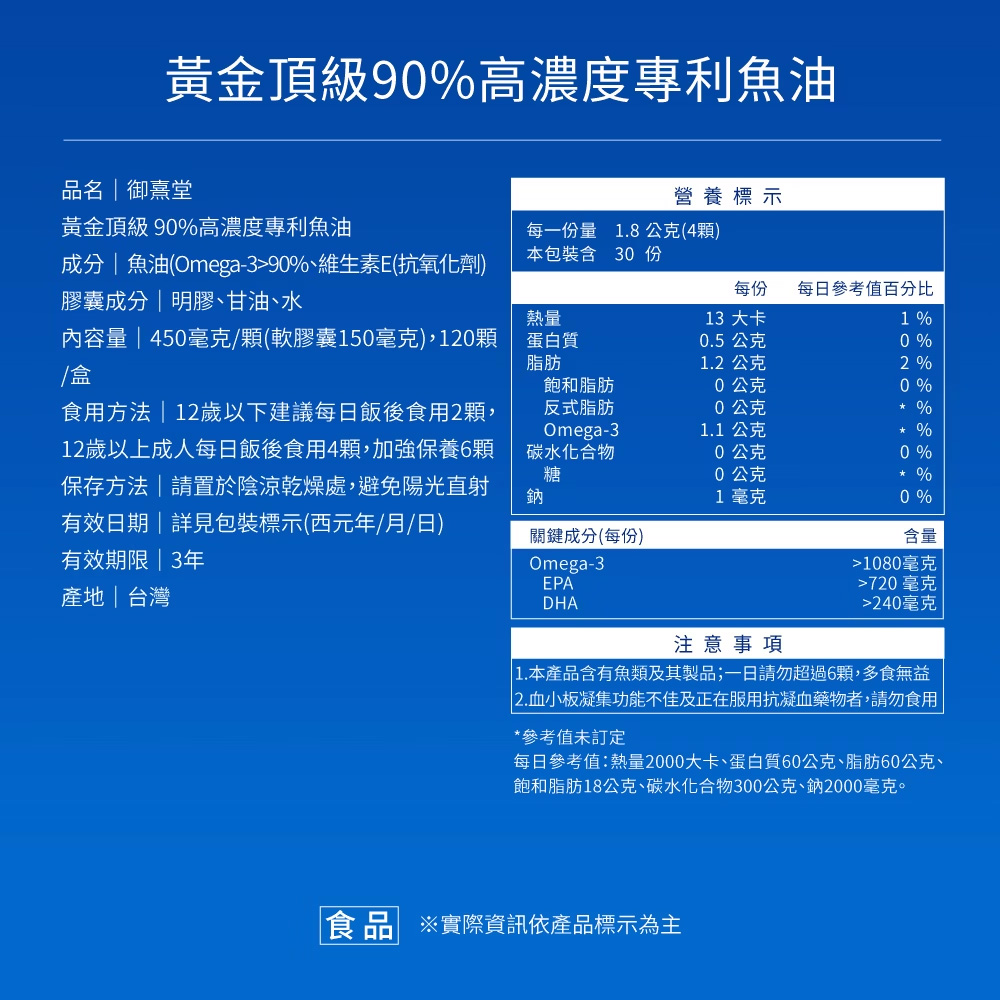㊣原廠公司貨 御熹堂 魚油 黃金頂級 90%高濃度專利魚油(120顆/瓶)