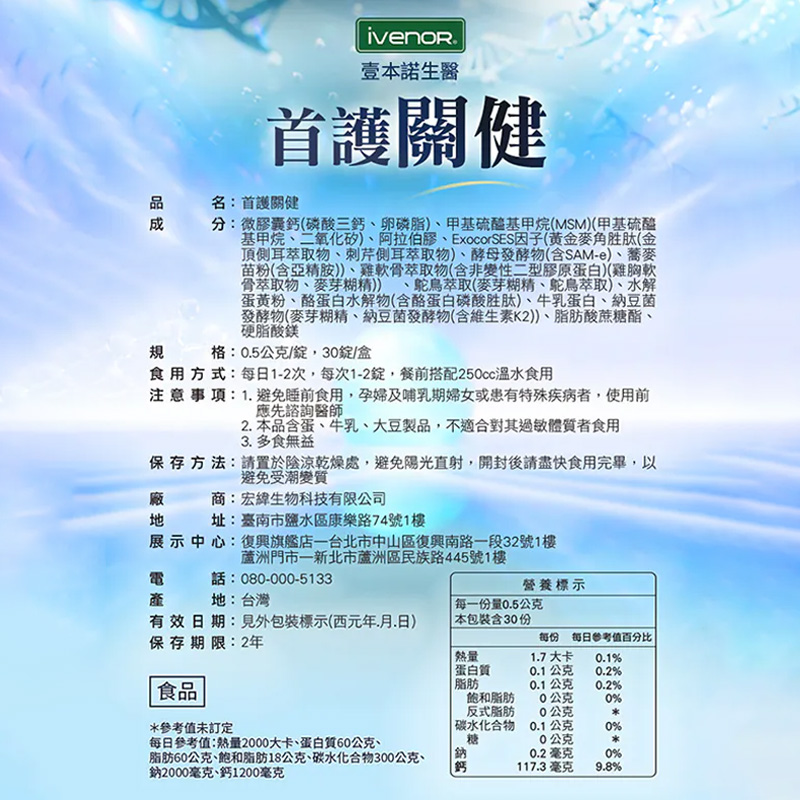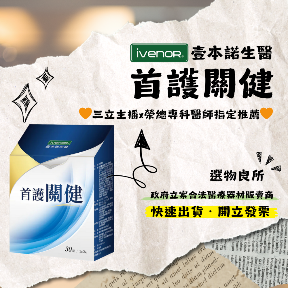 ㊣原廠授權經銷 IVENOR 壹本諾生醫 首護關健 (30錠/盒)