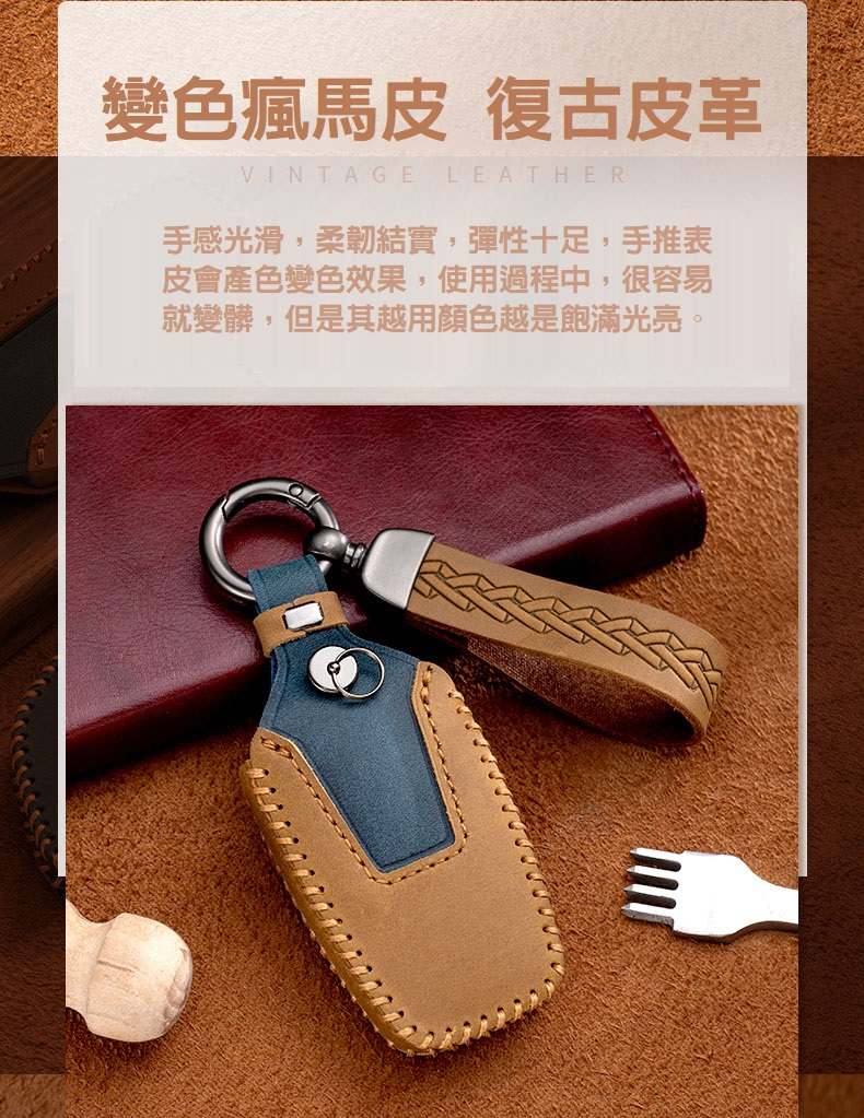 📌產品名稱:瘋馬皮BMW鑰匙皮套 -
