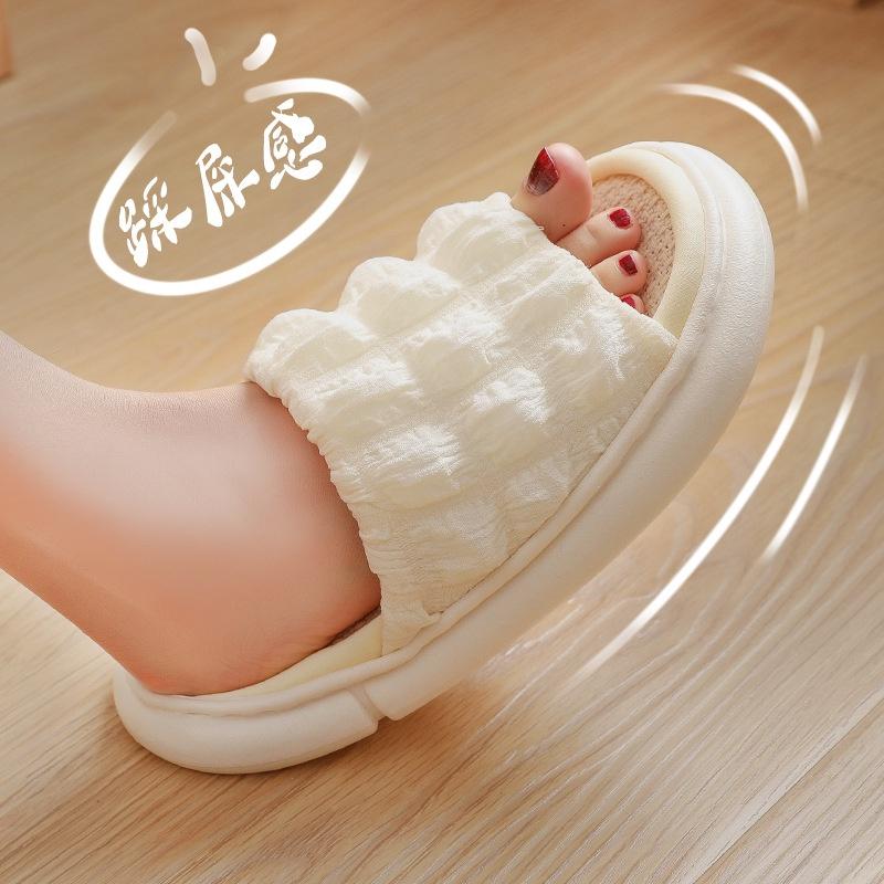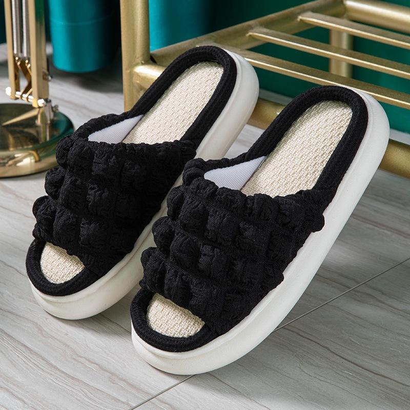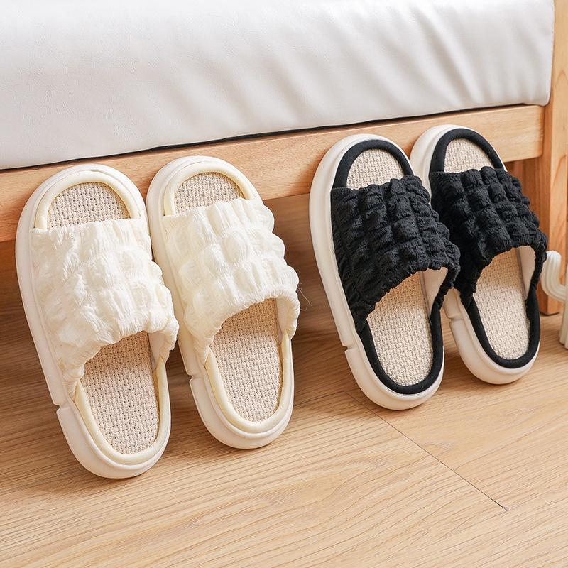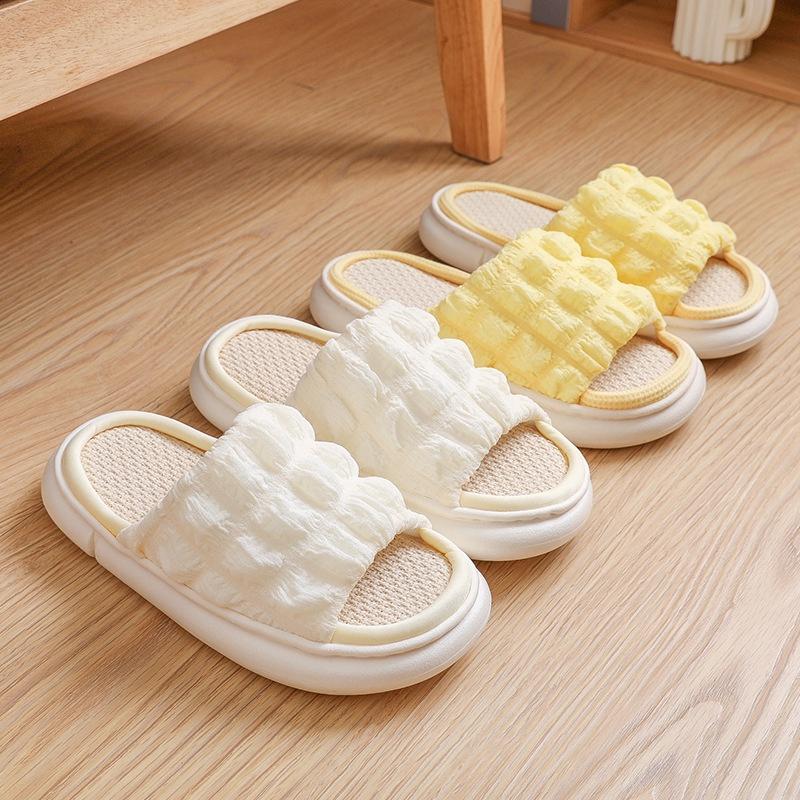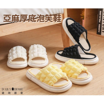 黛琍居家 DAILY HOME【台灣現貨】亞麻厚底泡芙鞋 泡芙鞋 時尚室內拖鞋 亞麻拖鞋
