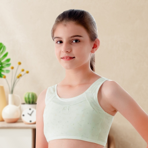 【annypepe】成長內衣二階 短版背心型 奧地利天絲 小肥貓-粉綠140~165(成長型內衣 少女內衣)
