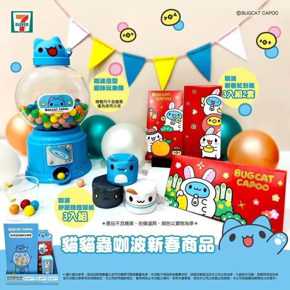7-11 貓貓蟲咖波 咖波造型趣味玩樂機 咖波紓壓捏捏球組 咖波新春紅包組 咖波造型趣味玩樂機 一定要收!不僅能裝糖果等小物,背後還可以當存錢筒,輕輕一扭就有驚喜,在家也能享受玩扭蛋機的樂趣! 咖波紓壓捏捏球組 可以隨意揉捏,心情不好的時候讓咖波陪你紓解壓力,從容面對難題~ 咖波新春紅包組 春節絕對不能少的紅包來了!「」共有3款,上面都有咖波化身小兔子的圖案,陪你一起迎接兔年! 7-11 咖波2023新春商品組合 一整組含盒販售 內含 1. 咖波造型趣味玩樂機 2. 咖波舒壓捏捏球組 3. 咖波新春紅包袋組x2 7-11 2022 發光咖波水晶球 咖啵水晶球 尺寸 9 * 9 * 13cm