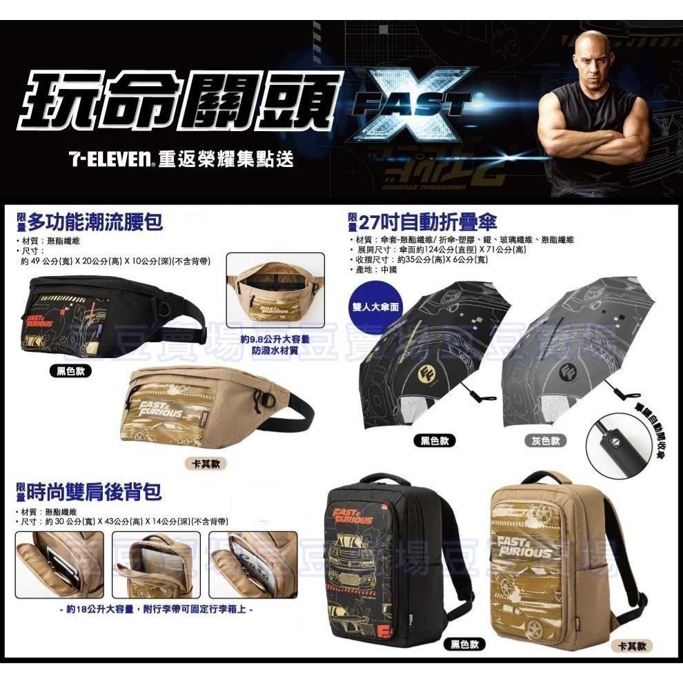 7-11 玩命關頭10 重返榮耀 多功能潮流腰包 27吋自動折疊傘 時尚雙肩後背包