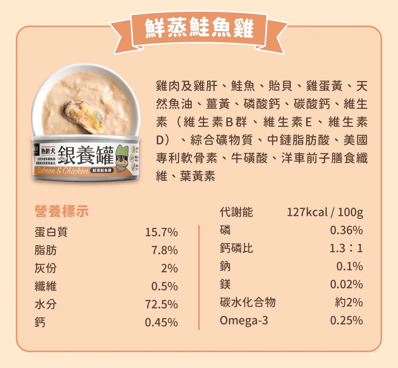• 老犬-鮮蒸鮭魚雞165g 老犬-鮮蒸鮭魚雞165g