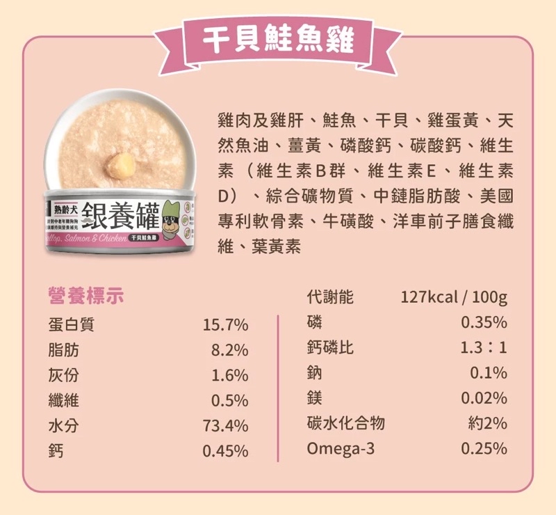 • 老犬-干貝鮭魚雞80g 老犬-干貝鮭魚雞80g