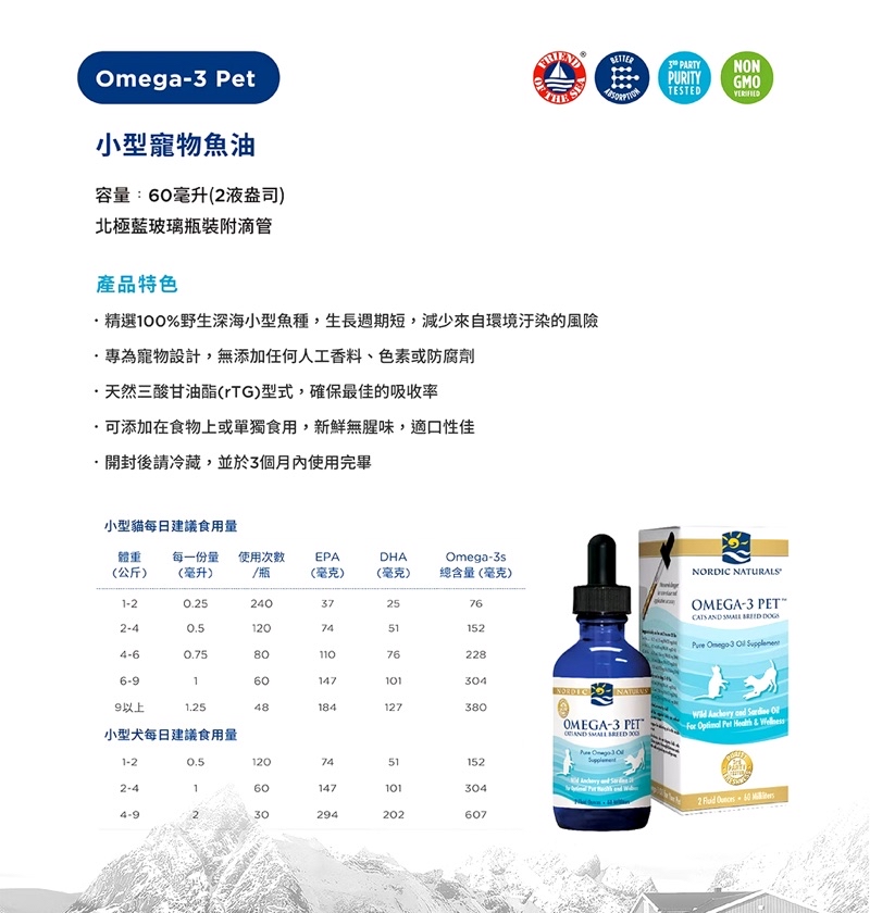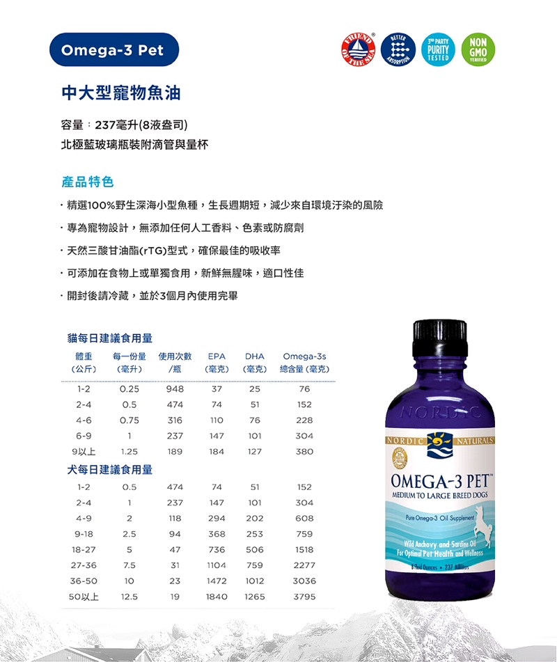 3~4公斤: 0.5毫升(69毫克EPA/41毫克DHA)