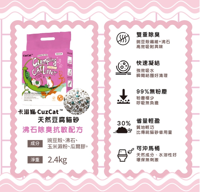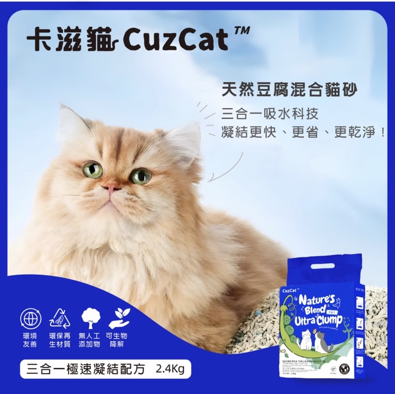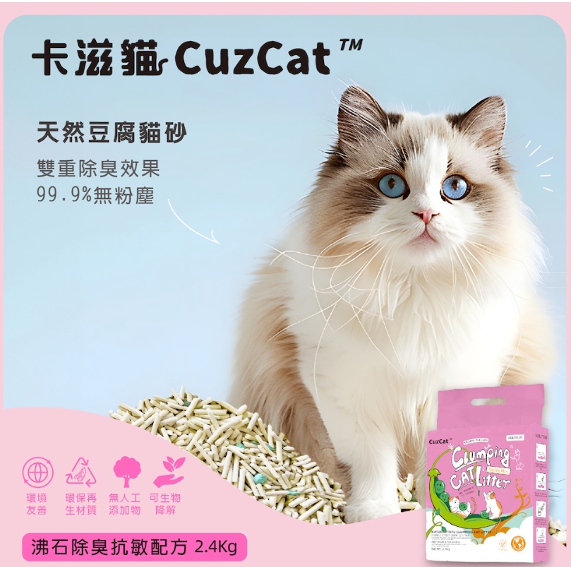 ✨【168汪喵】✨整箱宅配免運✨ CuzCat 卡滋貓 天然豆腐貓砂 沸石除臭抗敏配方 2.4kg*6入 貓砂 豆腐砂