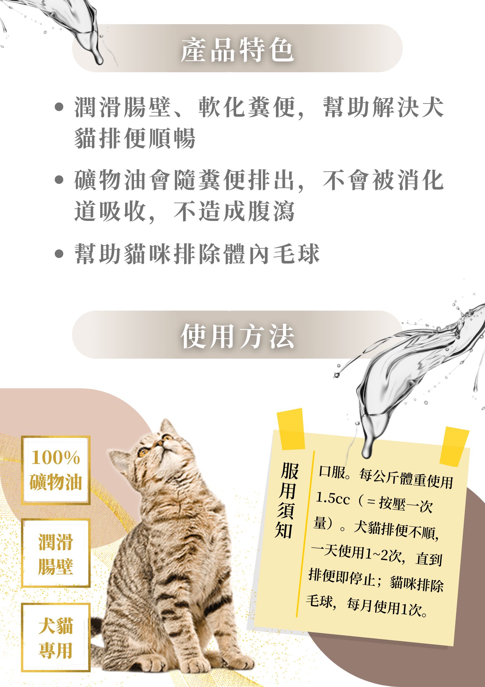 有排便即可停止。貓咪排除毛球,則每月使用1次。