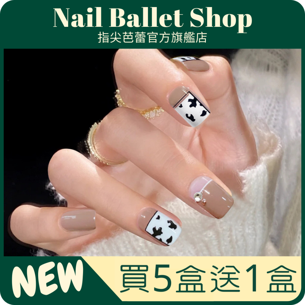 聖誕節新款OL氣質裸色奶牛紋豹紋法式穿戴甲 假指甲貼片 美甲片 法式指甲 新娘美甲片 法式光療甲片 指甲片 指甲貼