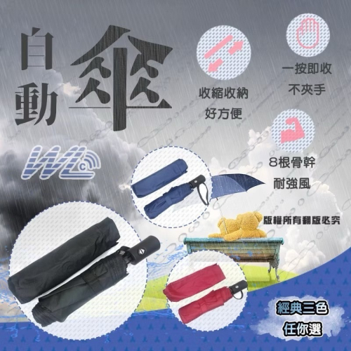 台灣製造 雨天遮陽必備 黑膠FRP自動傘