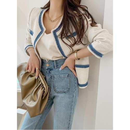 滾邊配色小香風外套