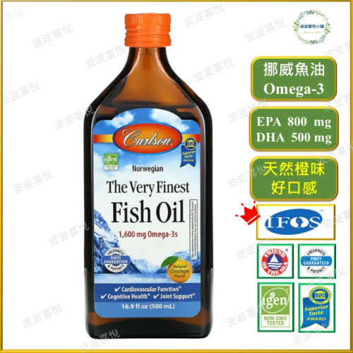 ֍波波喜悅֍Carlson, 挪威 IFOS 優質魚油 天然檸檬味/橙味_2種口味選擇, Omega-3 500 毫升