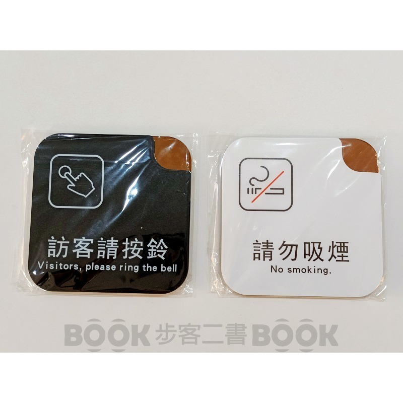 【全新】標示牌 訪客請按鈴 請勿吸煙 10x10公分