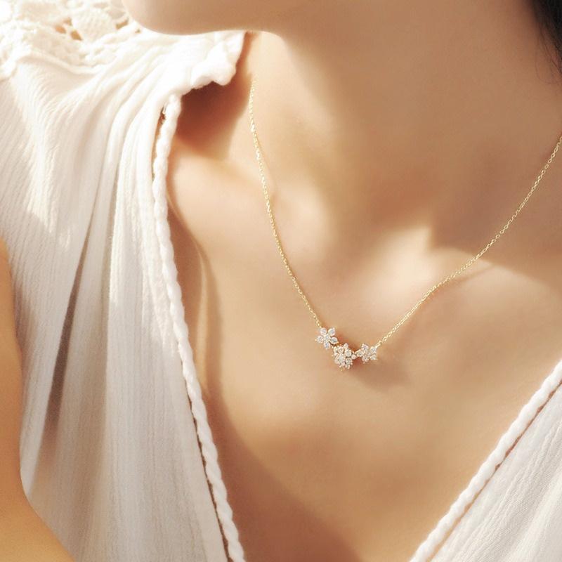 【台北奧斯珠寶】14k金項鍊女款 小花鎖骨鍊子 黃金珠寶首飾