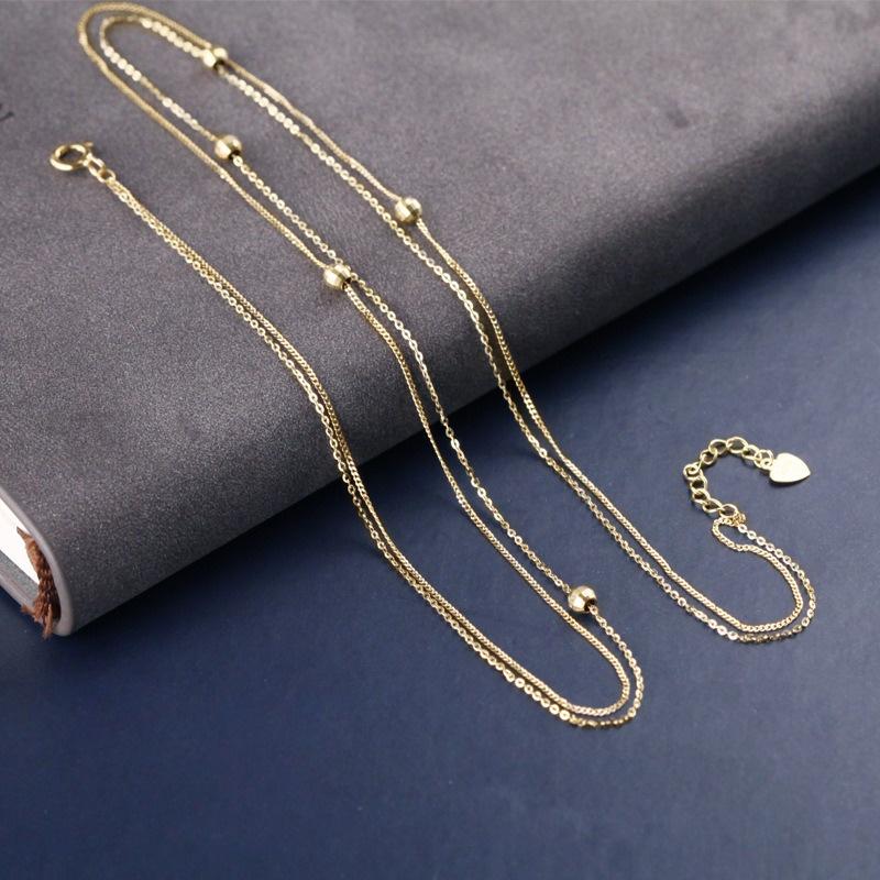 【台北奧斯珠寶】14k金項鍊女款 鎖骨鏈小金珠頸鍊雙層項鍊