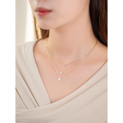 【台北奧斯珠寶】14K金項鍊 四爪鑲嵌小圓鑽鎖骨鏈頸鍊 黃金珠寶首飾