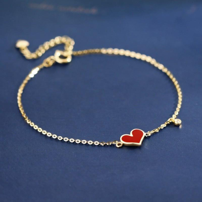 【台北奧斯珠寶】14K金手鍊 彩釉愛心調節鏈 黃金珠寶首飾