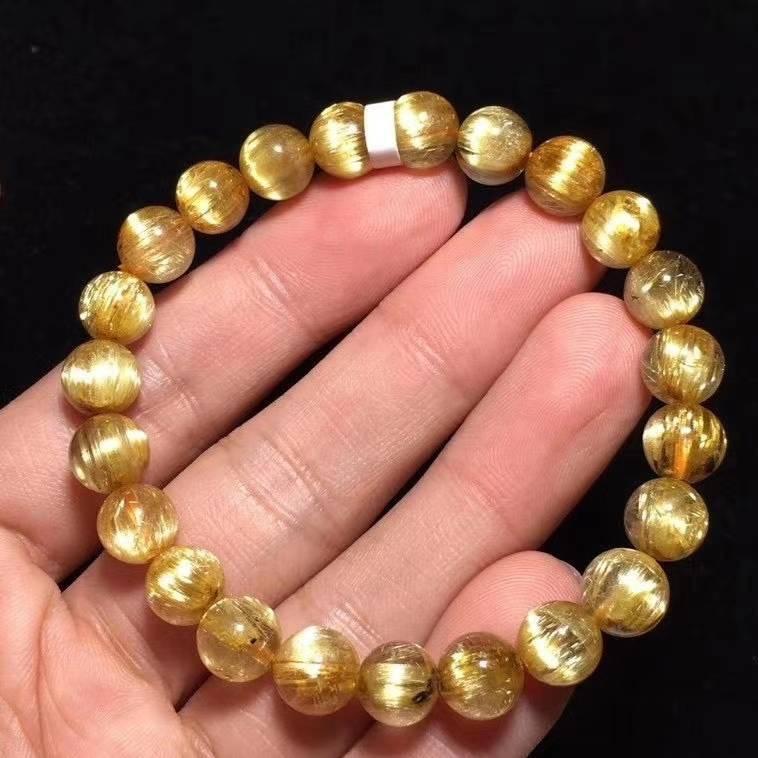 老礦天然鈦晶手鍊,顏色金黃,髮絲又閃又順,形成貓眼,性價比高鈦晶手排.女士精品天然鈦晶招財助事業(鈦晶.手排.招財.事業
