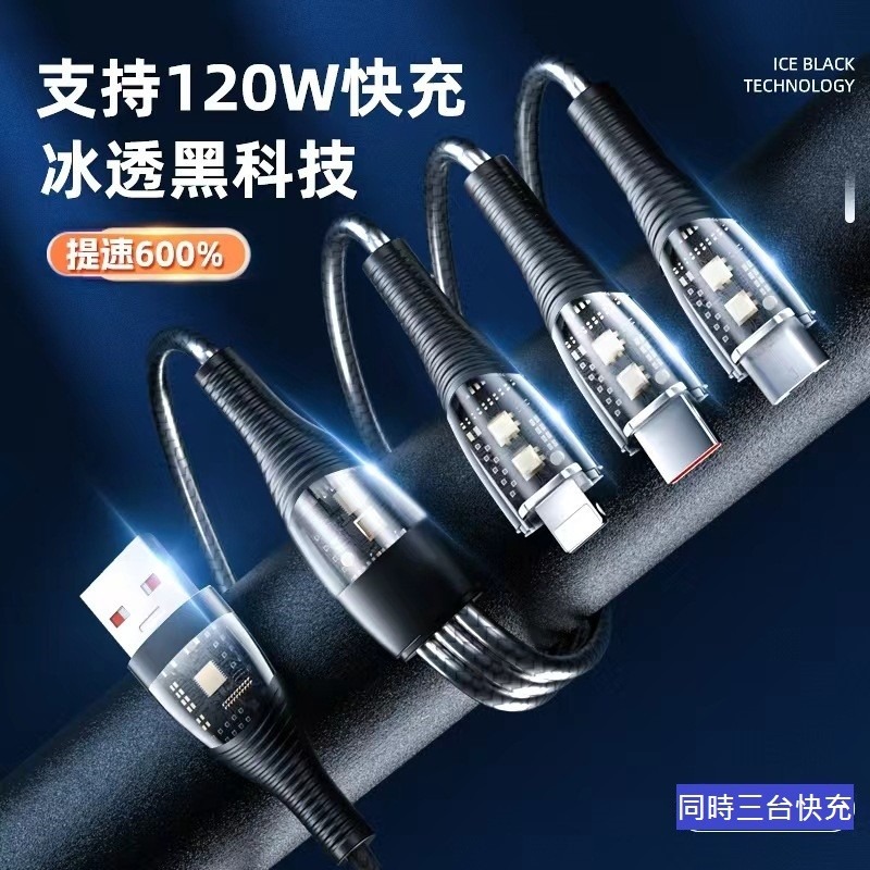 透明冰晶科技 一拖三120W充電線