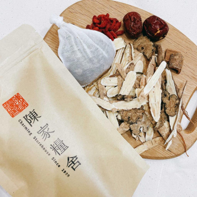 陳家糧舍嚴選迪化街30年老中藥行配方調配,香氣濃郁,一包在手 |在家簡單做出不簡單的料理,你也來試試看吧 ➤使用方式 |製作燒酒雞湯底 ➤準備食材:​ 雞一隻或半隻剁小塊,川燙去血水,藥包煮30分鐘後, 將雞肉放入燉鍋加米酒或半酒水,蓋過雞肉與藥包在煮至肉熟,約20-30分鐘即可 (以上食材建議用量僅供參考,可依個人口味調整。)​ ➤產品介紹 |品  名:燒酒雞 |成  分:當歸 黃耆 桂枝 枸杞 紅棗 川穹 |產  地:台灣 |淨  重:約110g |有效期限:標示於包裝上 |保存期限:二年 ➤注意事項 收到商品後請冷藏,以避免受潮變質 拍攝商品時會受環境、光線等因素影響,商品均以實物為準 本品依「得免營養標示之包裝食品規定」未有營養宣稱之非直接食用之調味香辛料、調理滷包,得免營養標示。