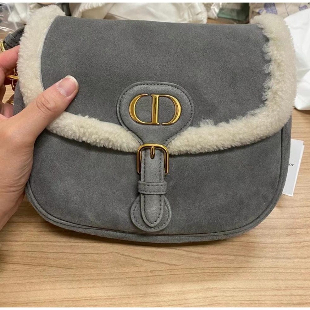【預購】Dior 迪奧 灰色中號羊羔毛斜背羊皮包包 MEDIUM BOBBY BAG