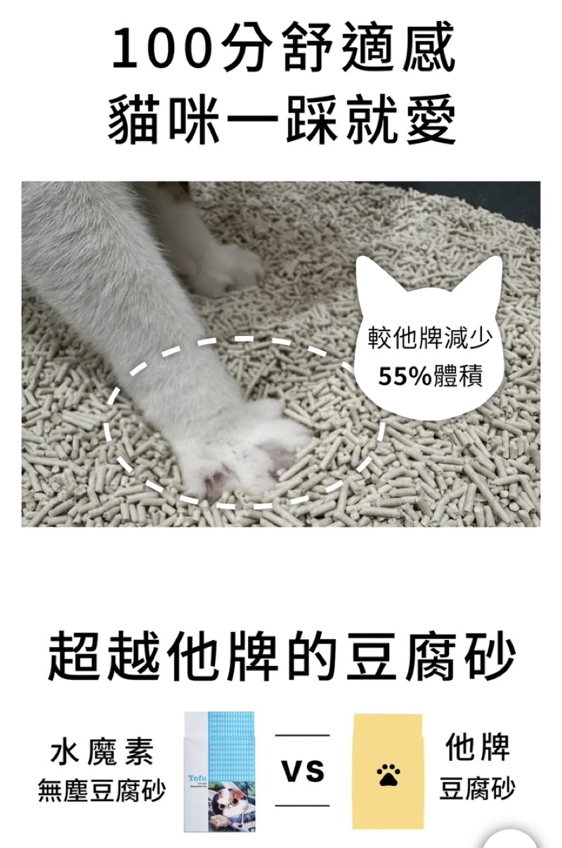 針對豆腐砂長蟲、黏底與容易臭的缺點,水魔素都克服了!