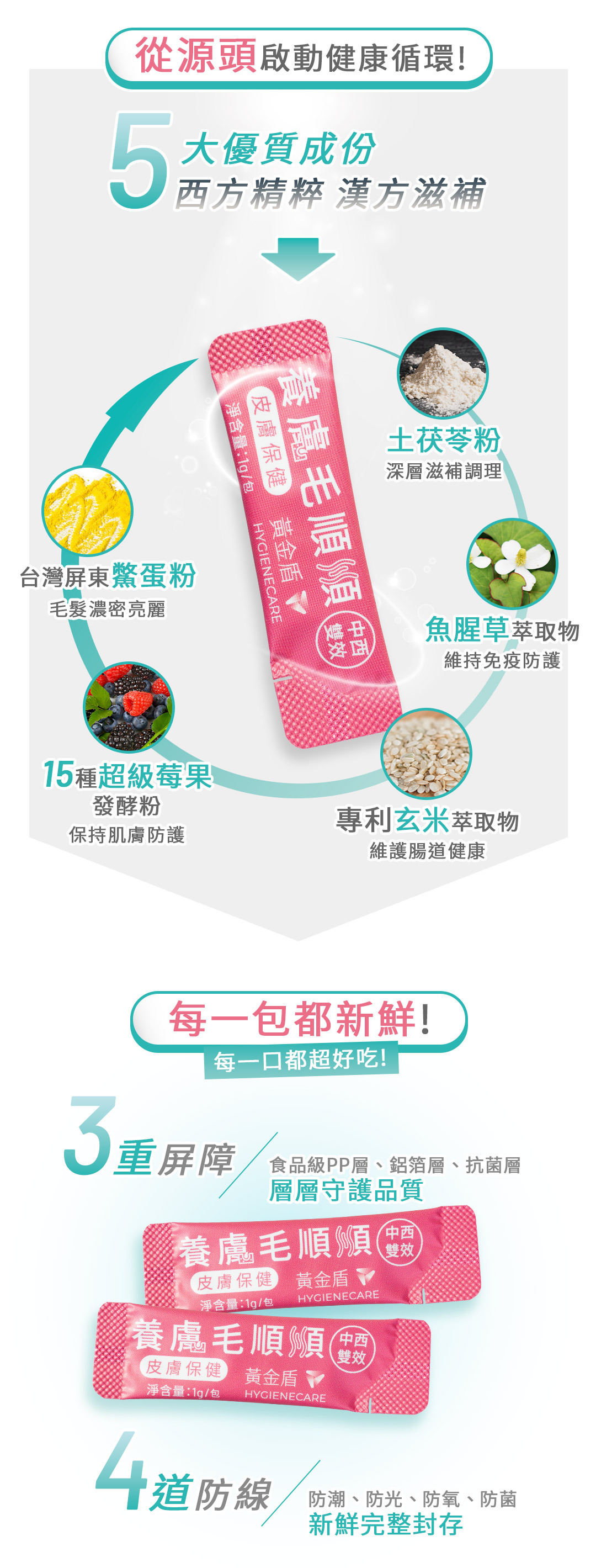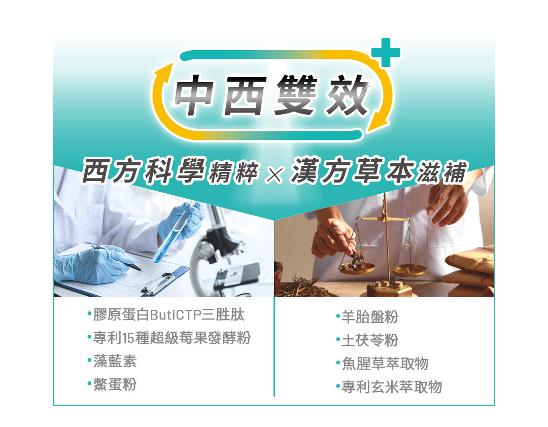 ►成分:水解蛋白、專利玄米萃取物、土茯苓粉、鱉蛋粉、專利魚膠原蛋白胜肽(含三胜肽)、魚腥草萃取物、硒酵母、羊胎盤粉、專利15種綜合莓果發酵物(接骨木莓、野櫻梅、巴西莓、山桑子、黑醋栗、覆盆莓、黑莓、藍莓、波森莓、蔓越莓、楊梅、枸杞、余甘子、草莓、桑椹)、藻藍素、麥芽糊精。