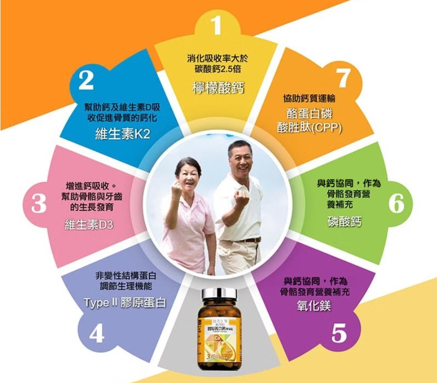 ★加乘:檸檬酸鈣+磷酸鈣+維生素D3加乘增進鈣吸收,幫助骨骼正常發育。