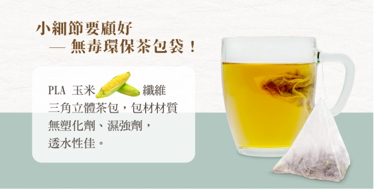 🌿【安心環保】三角立體茶包 (Premium & Eco-friendly Packaging):採用PLA玉米纖維製成的三角立體茶包。該材質為環保可分解材質,讓您喝得健康,也為地球盡一份心力。