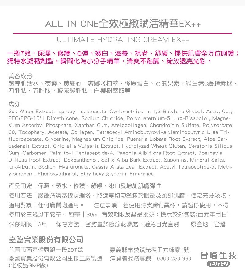 TAIYEN BEAUTY 頂級配方,將保濕、修護、舒緩、緊緻四大功效