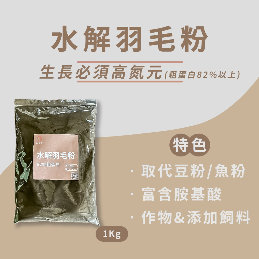 水解羽毛粉是羽毛經過高溫高壓處理後,分解出小分子蛋白質和短胜肽,可以取代豆粉或魚粉成為提供植株生長的高氮來源。同時,經高溫高壓後也降低了羽毛本身不良的氣味。