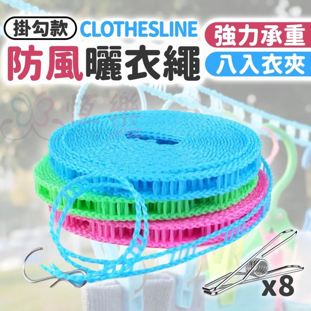 多功能曬衣繩-3米 5米【恆樂居家】 曬衣夾 棉被夾 露營 旅遊 防風 晾衣繩