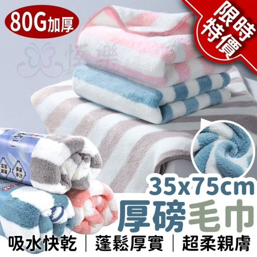 超厚磅珊瑚絨極柔毛巾 超強吸水 加厚 珊瑚絨毛巾 吸水毛巾 35*75公分【恆樂居家】洗臉巾 擦拭巾 毛巾 條紋毛巾