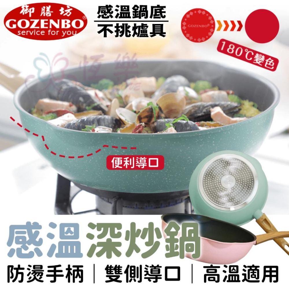 雙導口感溫變色IH深炒鍋【恆樂居家】不挑爐具 不沾鍋 不沾鍋炒鍋 湯鍋 不沾平底鍋 不沾炒鍋 炒鍋 深炒鍋 鍋子