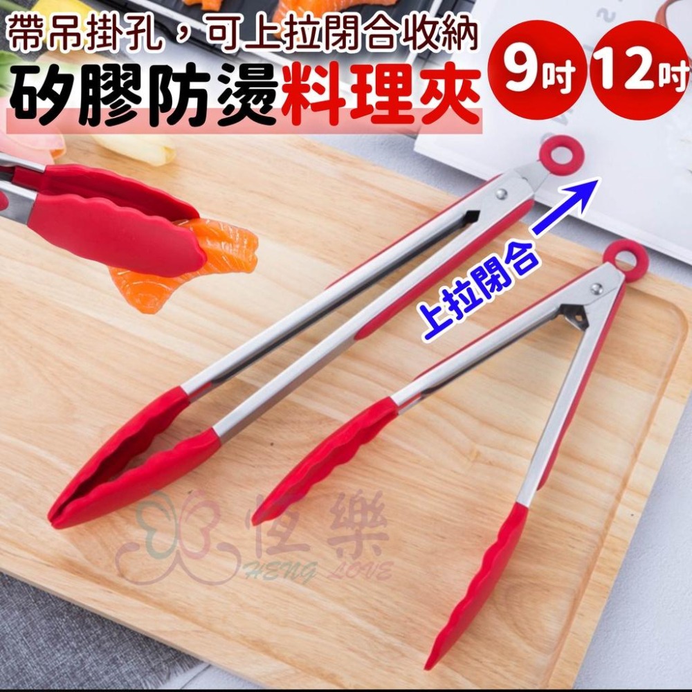 9吋/12吋多用途不鏽鋼矽膠食品夾【恆樂居家】 不沾鍋專用夾 料理夾 夾子 取物夾 烤肉夾 萬用夾