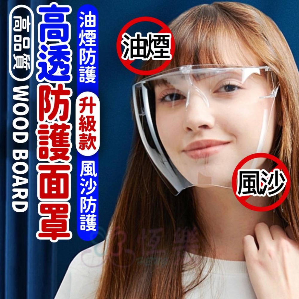 -現貨-PC透明全臉防護面罩【恆樂居家】防護面罩 護目鏡 防疫 廚房面罩 透明面罩防飛沫 防疫面罩 防風沙 防油濺