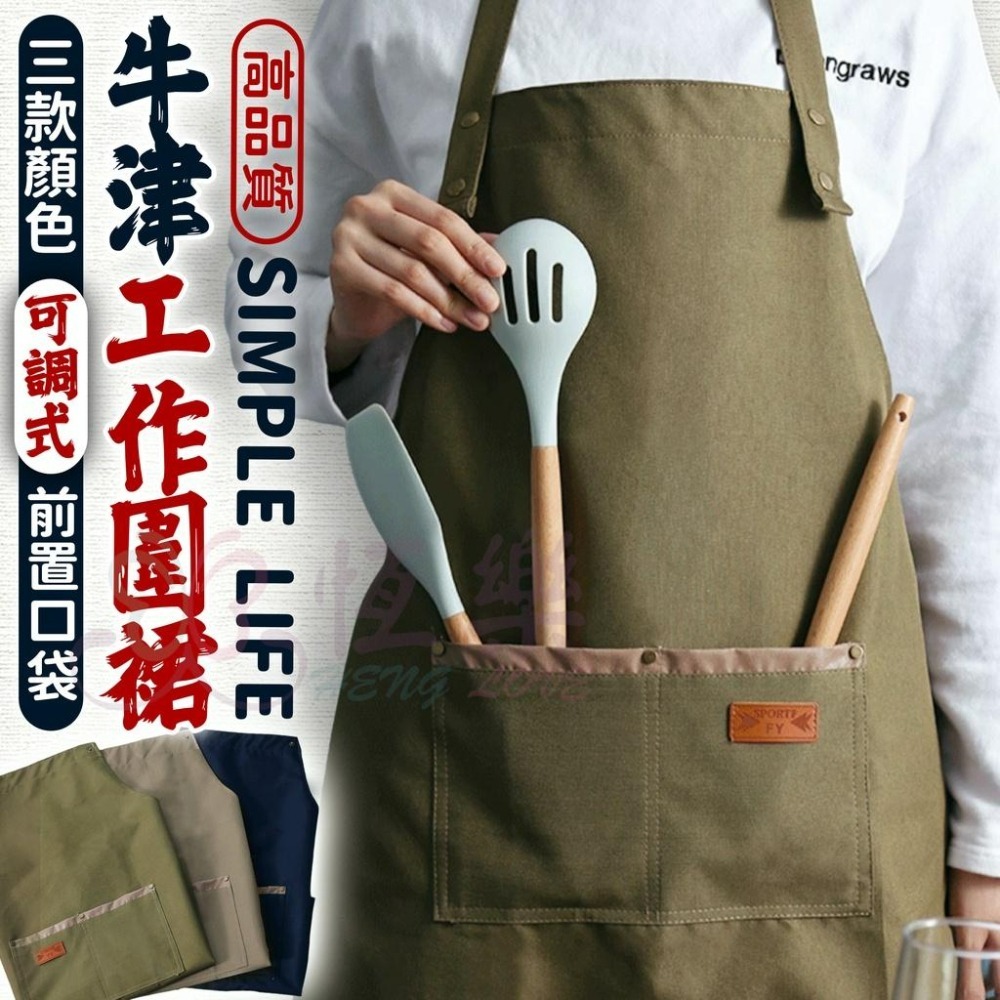 文青風 防潑水牛津布工作圍裙 日式復古圍裙【恆樂居家】圍裙 廚房圍裙 防水圍裙 廚師圍裙 咖啡店圍裙