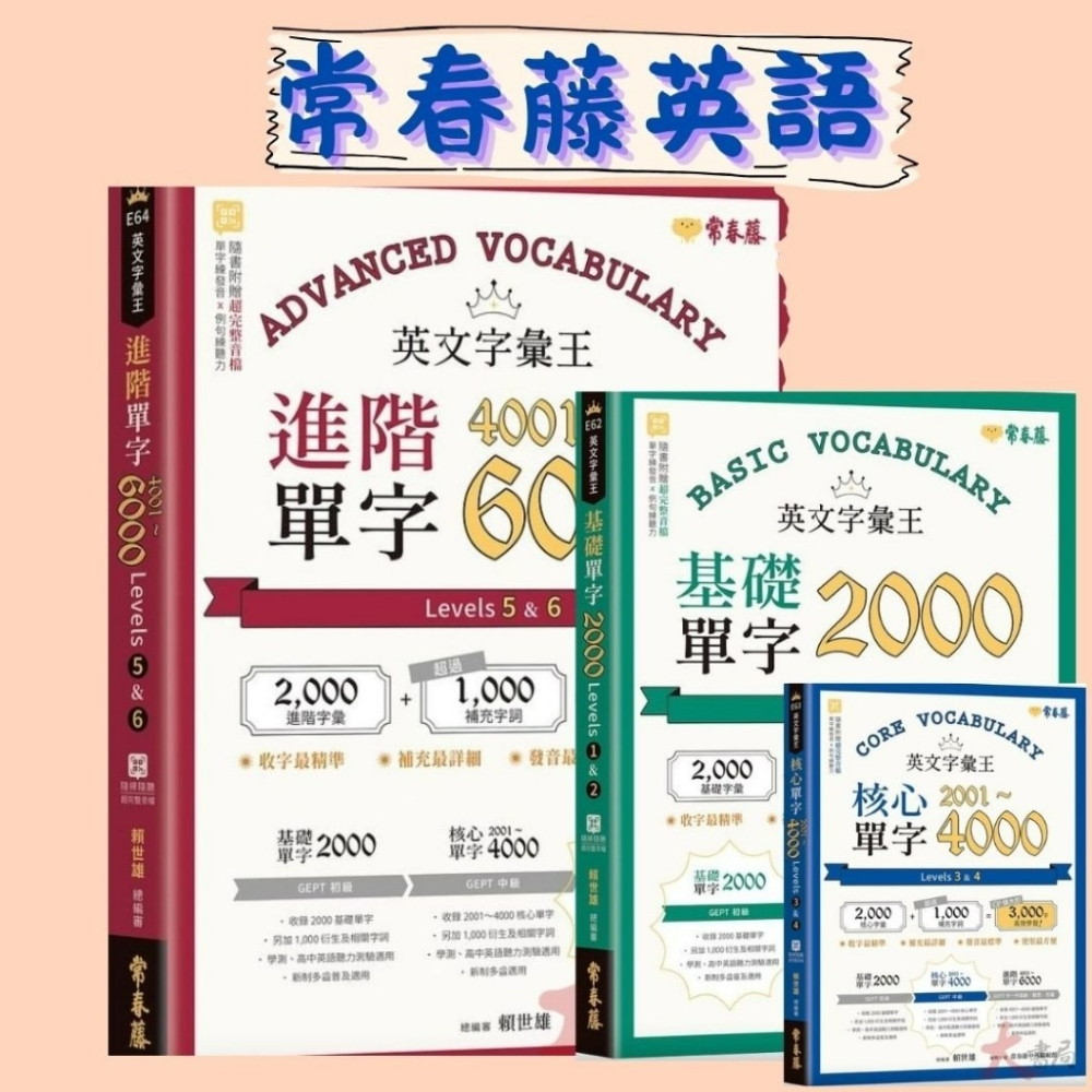 常春藤 『英文字彙王』基礎2000/核心2001~4000/進階4001~6000 單字