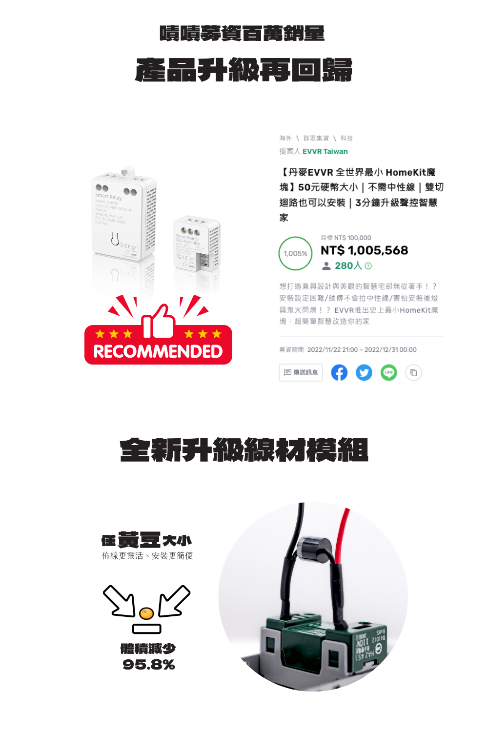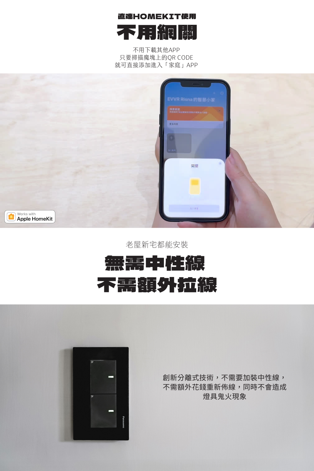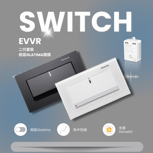 EVVR 二代智慧雙切套裝|相容 Glatima 開關面板|免中性線 支援雙切|不擠底盒|設計師推薦 HomeKit