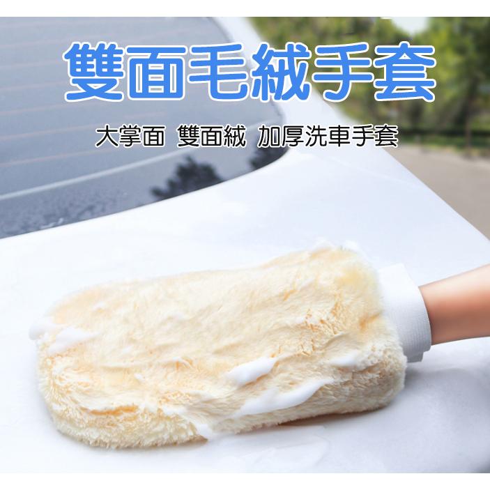 【小魚生活館台灣現貨】雙面仿羊毛洗車手套 汽車美容 不傷烤漆 方便使用 單一尺寸