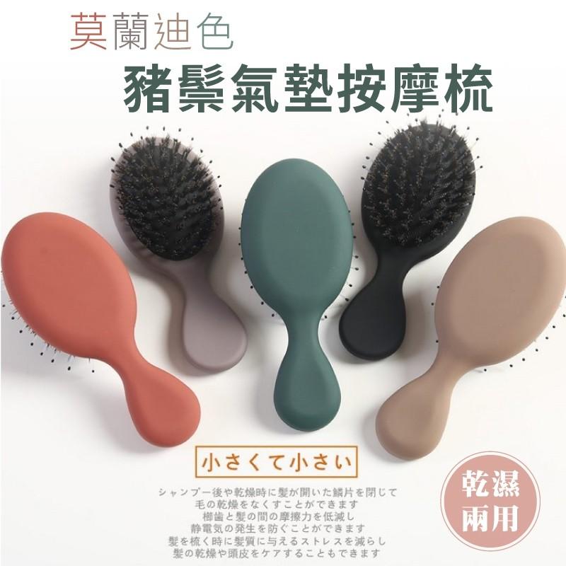 【小魚生活館台灣現貨】莫蘭迪色豬鬃氣墊按摩梳