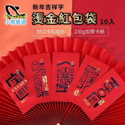 【小魚生活館台灣現貨】吉祥字燙金紅包袋 10入