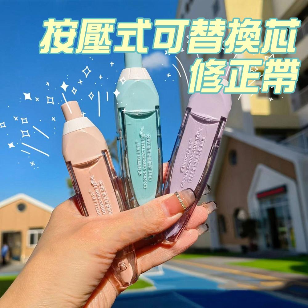 【小魚生活館台灣現貨】按壓式可替換芯修正帶 文具 修正 立可帶 辦公 上學