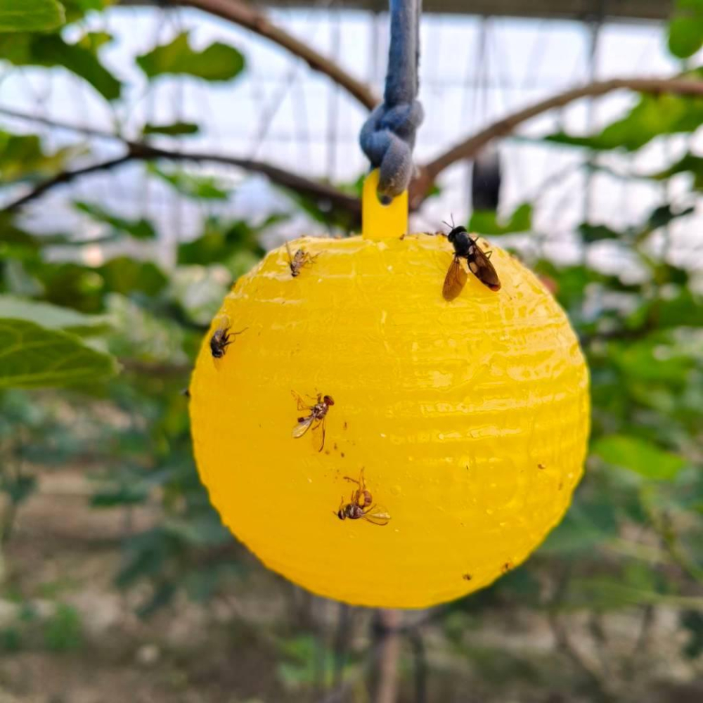 【小魚生活館台灣出貨】 8cm果樹球型黏蟲板(單顆) 捕蟲誘蟲板 果蠅蒼蠅小飛蟲 園藝用品 菜園果園花園除蟲