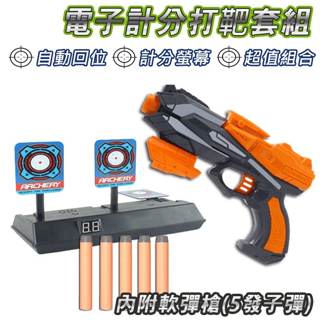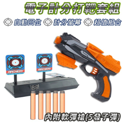 (1靶+1槍) 電子計分打靶套組 LED 電子靶 射擊靶 軟彈槍 射擊練習 自動復位 電動靶【B77001702】