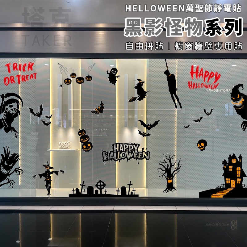 不殘膠 窗貼紙 靜電貼 無痕窗貼 (黑色怪物) 萬聖節 卡通貼 玻璃貼 壁貼 地板貼 彩繪裝飾【W440093】