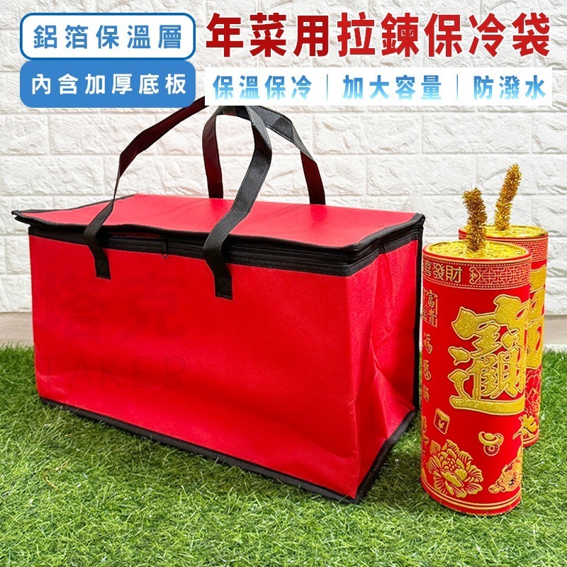 | 商品特色 | ■名稱:年菜用保冷袋 ■說明: ●商品最大承重8-10公斤 ●加大容量 年菜/餐廳外帶專用 ●十字加固提把,耐重耐用 ●內附加厚底板/可當隔板用 |