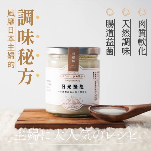 • 鹽麴來自於日本,是一種以米麴與鹽天然發酵的傳統調味料,除了能取代鹽巴外,更能讓料理散發自然鮮甜,近年更因發酵食物的熱議讓鹽麴在日本主婦間風靡,成為人手一罐的調味秘方。